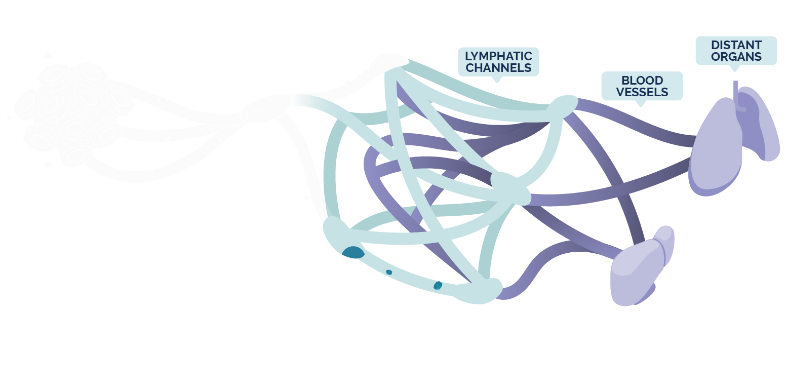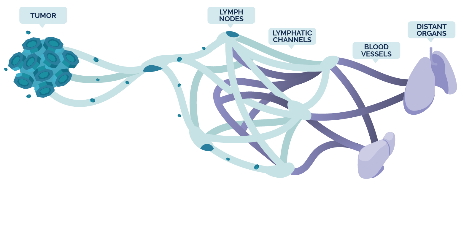 The lymphatic system is the most common means of metastasis in over 90% of cancer cases. Lymphatic metastasis begins in the nodes nearest the tumor where cancer cells can grow and eventually spread via the circulatory system.